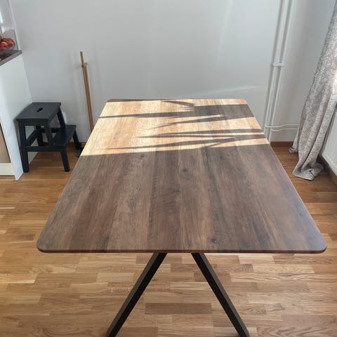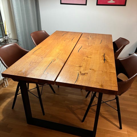 Skovlunde matbord bra skick någon liten repa annars mycket fin med möjlighet till iläggsskiva (dock har inte jag det) men finns på jysk. Med extra skiva blir bordet ca 280cm