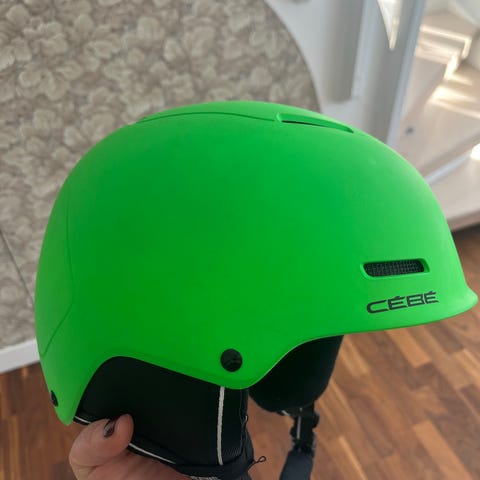 Cébé hjälm i orange färg. Hjälmen har justerbart hakband och ventilationsöppningar upptill. Passar för aktiviteter där huvudskydd behövs, exempelvis cykling eller liknande användning. Storlek är inte angiven.