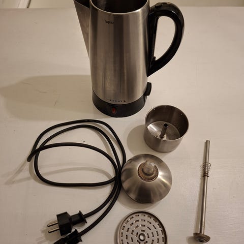 Stilren Graef vattenkokare (Made in Germany) i rostfritt stål med svart handtag.