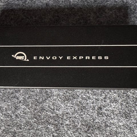 OWC Envoy extern SSD-kabinett med USB 3.0-anslutning för Mac och PC. Avsett för montering av intern SSD (modellberoende, se originalförpackning eller tillverkarens specifikationer för kompatibilitet). Kabinettet har kompakt aluminiumliknande hölje och LED-indikator. Levereras med USB-kabel och tillbehör enligt bilderna. Lämpligt för användning som extern lagringsenhet eller backup när kompatibel SSD monterats i kabinettet. INGEN FRAKT