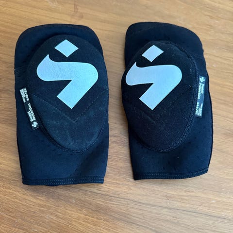 Scott knäskydd för cykel i storlek L, modell short. Skydden har elastisk överdel med silikonprint på insidan för att hålla dem på plats runt låret. Förstärkta skyddszoner över knäna. Passar för användning vid exempelvis mountainbike eller annan cykling där extra knäskydd önskas. D3O skydd som är mjuka vid rörelse men hårdnar vid slag. Sköna och lätta, endast använda några gånger då jag som är storlek medium/small upplever dom som för stora.