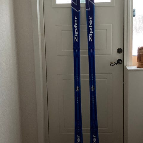 Helt oanvända carvingskidor 140 cm och stavar 110 cm.
