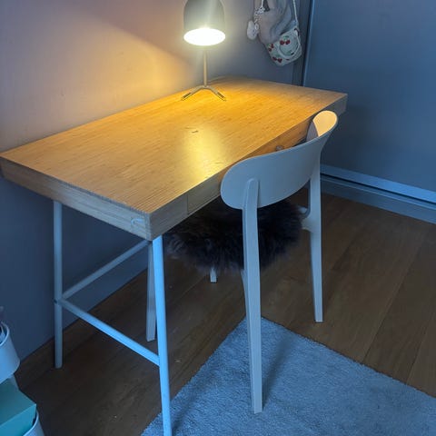 Ett stabilt riktigt bra bord. Smidig och lätt att placera. Bordsytan är i ask och benen i massivt björk.