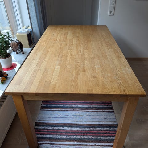 Matbord i massiv ek 1500x1000 utan iläggsskiva och 1500x1500 med iläggsskiva