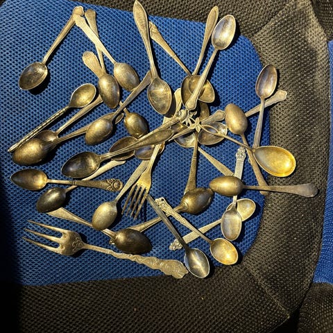 Bestickset matknivar gafflar skedar metall trähandtag