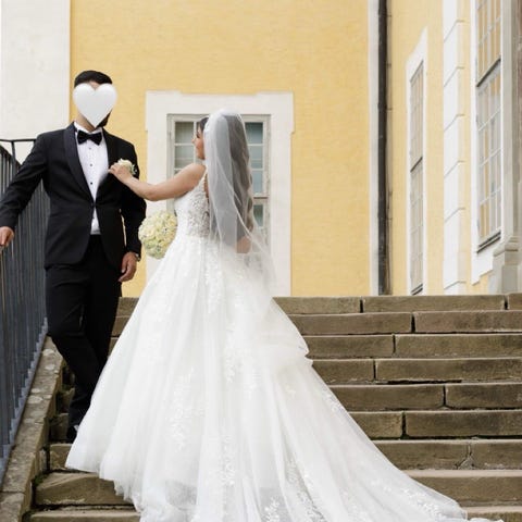 Brudklänning Sima Couture med 4 meter släp