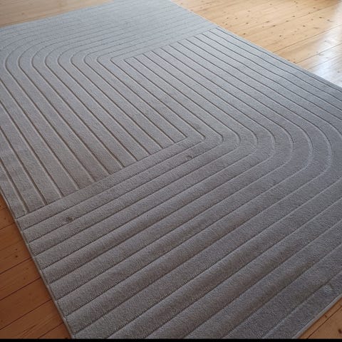 Jysk Sandfiol matta i storlek 130x193 cm i färgen creme. Rektangulär matta med reliefmönster i bågar som ger en strukturerad yta. Passar exempelvis i vardagsrum, sovrum eller hall som golvmatta. Material enligt produktetikett från Jysk (syntetisk väv).