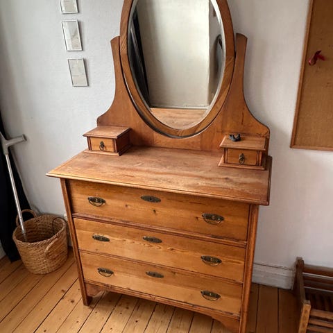 Byrå med spegel i mörkt trä