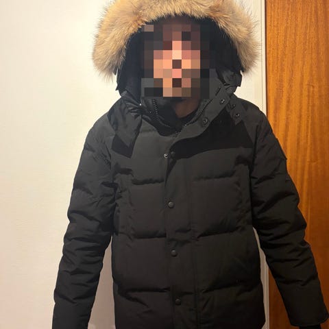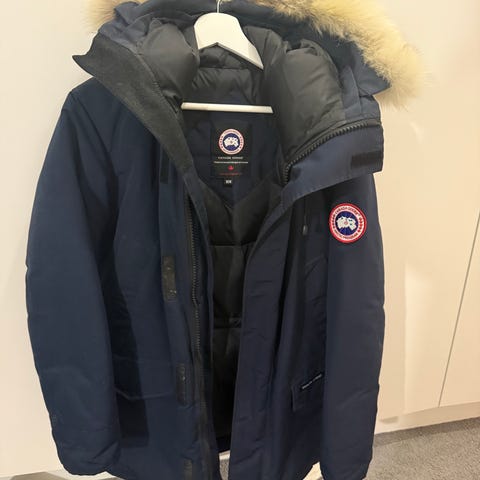 Välanvänd Canada Goose vinterjacka men fortfarande varm och go. Dragkedja, pälskrage i mycket bra skick. Muddarna är slitna men kan lätt åtgärdas! Det är ett litet hål ca 4 mm, brännmärke, på ena fickan det är lagad professionellt men vill man kan man också sätta ett coolt tygmärke över. Allt är fotograferat.