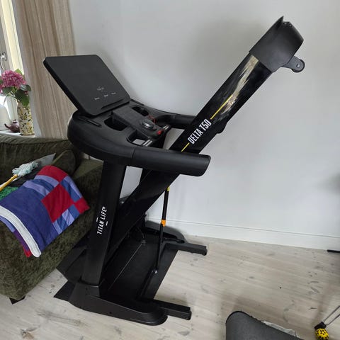 Det är ett stabilt och tyst löpband som samtidigt är extremt smidigt att förvara. Det går att fälla helt platt och ställa mot väggen, bakom en dörr eller skjuta in under sängen. Perfekt för lägenhet eller mindre hemmagym.
