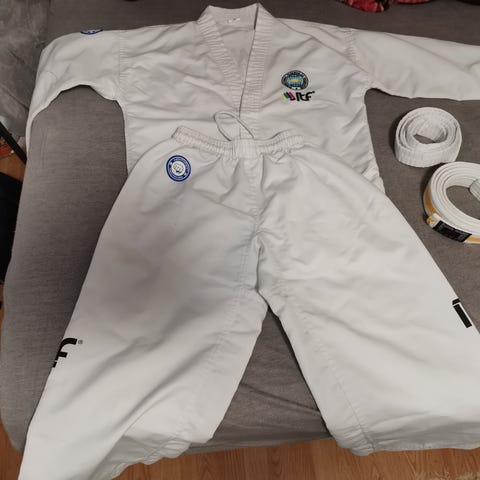 Fuji kampsportsutrustning set i röd färg. 2 par fotskydd ingår också, hittade efter att annonsen lades ut.