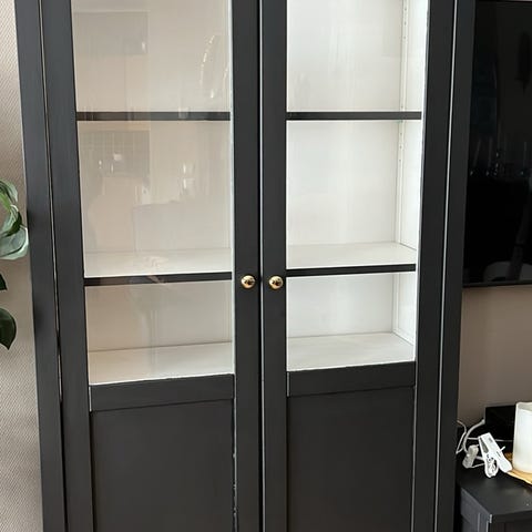 Svart vitrinskåp.