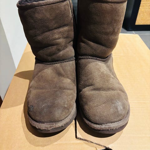 Uggs stövlar i brunt. Stövlarna har en mjuk insida och en robust sula. De är designade för att vara bekväma och varma.