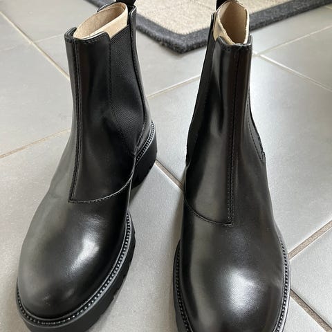 Tiger of Sweden chelseaboots i svart skinn i storlek 41. Modellen är randsydda med en ankelhög sko med resår i sidorna. Ovandel i läder och sltsulan i vibramgummi. Passar för vardagsbruk under kallare säsong. Neutralt utförande som fungerar till både jeans och mer uppklädda plagg. Nypris ca 3999kr.