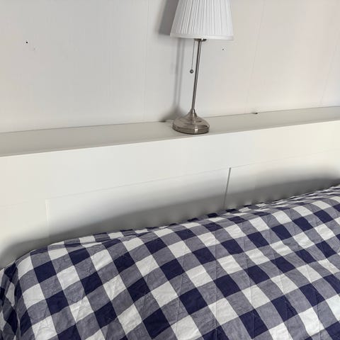 Vit sänggavel från IKEA i mycket fint skick, endast en liten obetydlig repa på 5mm på ett av hyllplanen.
