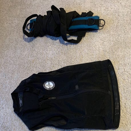 Mycket smidig sele för att kontrollera ett barn som lär sig åka skidor. Fästes runt midjan på barnet och i den praktiska magväskan kan selen förvaras under liftfärden.