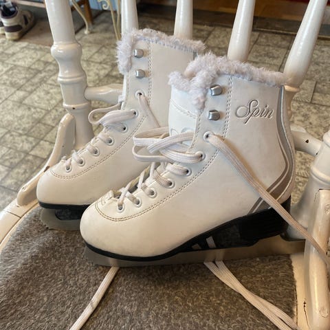 Modellen är vit med snörning och har mjuk, ljus pälsfodrad kant upptill för extra komfort runt ankeln. Skridskorna är avsedda för övrig skridskoåkning, till exempel lek och fritidsåkning på is. Bladen är monterade på vit sula och levereras med plastskydd på skenorna på bilderna.