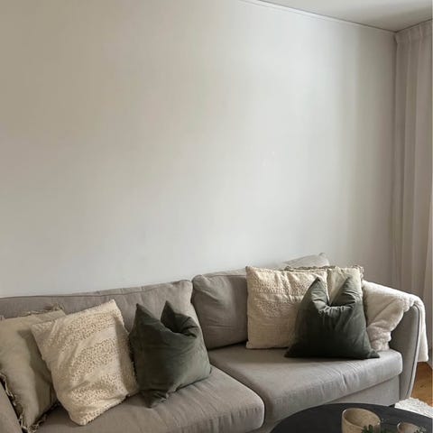 Soffans kuddar och dynor har avtagbara klädslar. Se tvättråden för det tyg du väljer.