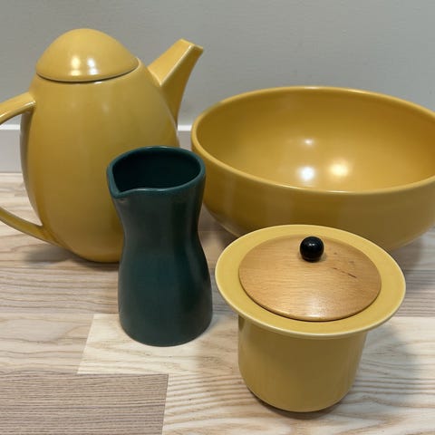 Höganäs collection Gul tekanna, sockerskål, mjölkkanna, två stora tekoppar säljes