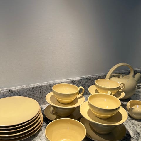 Höganäs collection Gul tekanna, sockerskål, tekoppar