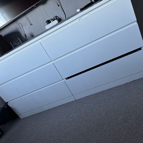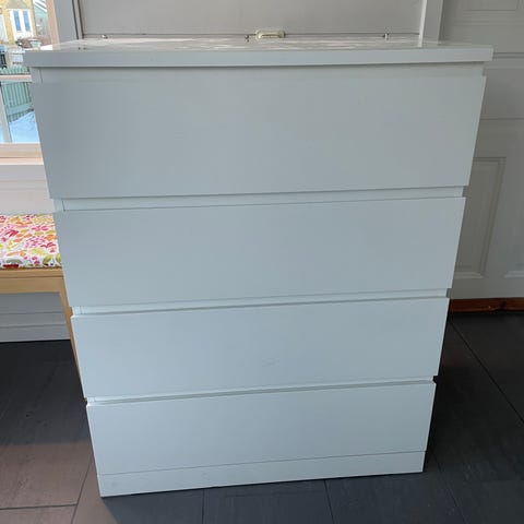Malm byrå med tre lådor.