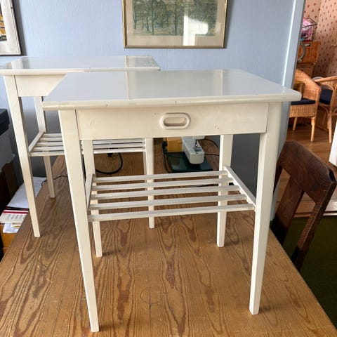 2 stycken vita sängbord i metall. Fint skick.