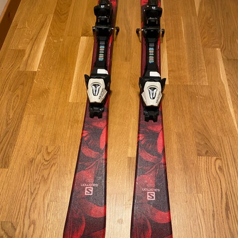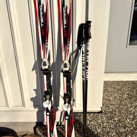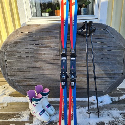 På bilderna syns även ett par skidstavar som kan ingå vid köp av skidor om man vill.
