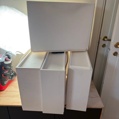 Till IKEA pax stomme 50*35. 10 stycken. Kompletta med skenor och skruvar. Beiga. 20 kr styck.