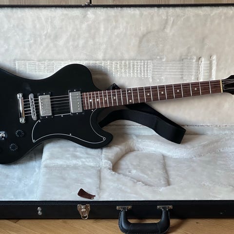 Tidigare ägare har routat för en extra mick, men hade nuvarande konfig. när jag köpte den. Det sitter 2 st Tonerider P-90’s i den som jag verkligen inte behövt byta. Lätt o fin ,obruten hals m 50’s profil. En fröjd att spela på, låter skitbra men jag har för mycket grejer.