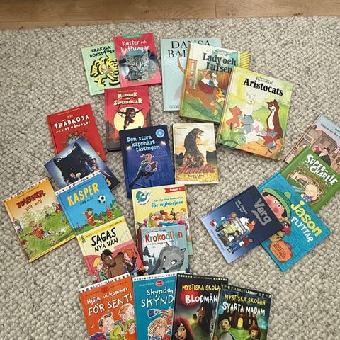 Tänker mig 400 kr för allihop. 29 stycken, vilket är ca 14 kr per bok.