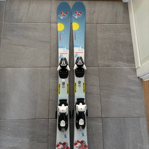 Rossignol Comp J alpinskidor för barn med tillhörande skidbindningar. Ca 1 meter långa.