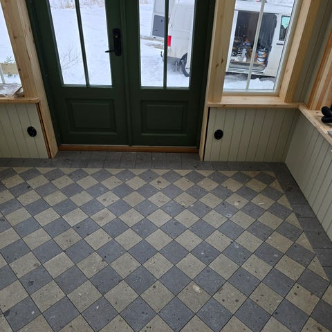 ObS! Går att se lagda i två olika badrum på plats.
