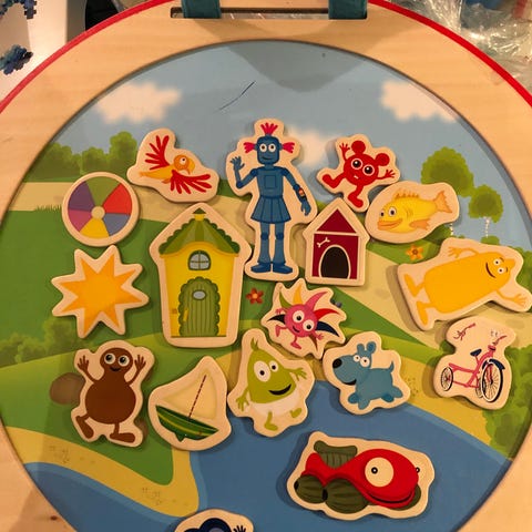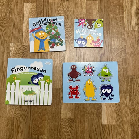 Säljer ett fint set med Babblarna-förvaring till bilens baksäte samt matchande Babblarna låda.