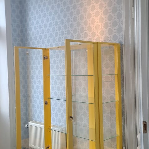 Vitrinskåpet är i nyskick och finns i Göteborg. Något lägre pris än i butik och du slipper den extremt tidskrävande monteringen.