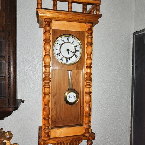 Gammalt väggur. Ej funktionstestad. Total längd ca 93 cm.