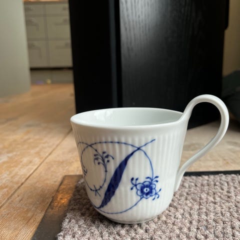 Royal Copenhagen kaffekoppar med fat porslin vit blå