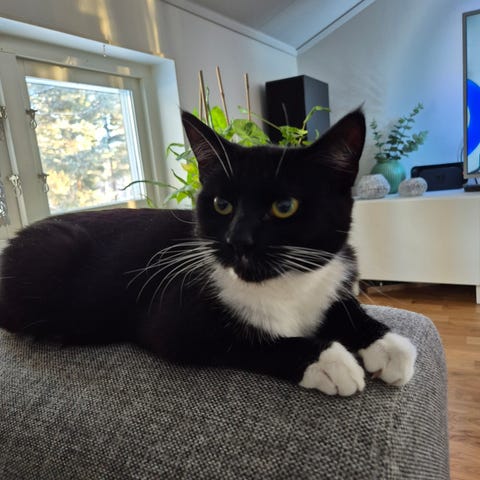 Hon är född den 20 oktober 2024 och är grundvaccinerad, chippad och kastrerad. Hon är full av liv, nyfikenhet och rörelseglädje. Hon är pigg, klok och har en energi som vittnar om en katt som vill utforska världen, inte bara betrakta den genom ett fönster.