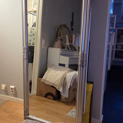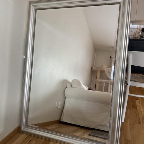 Stor spegel. Totalt med avtagbart krön 185 hög. Bredd 65 .