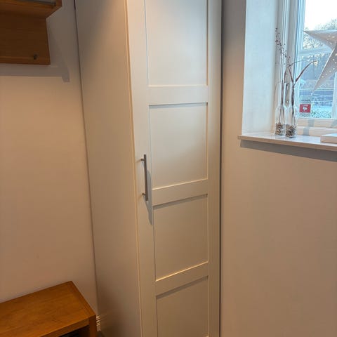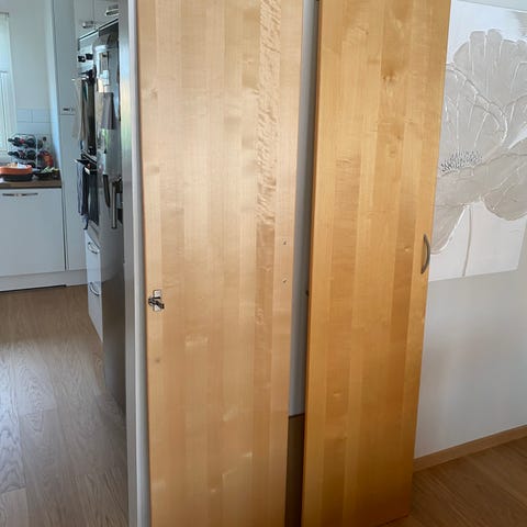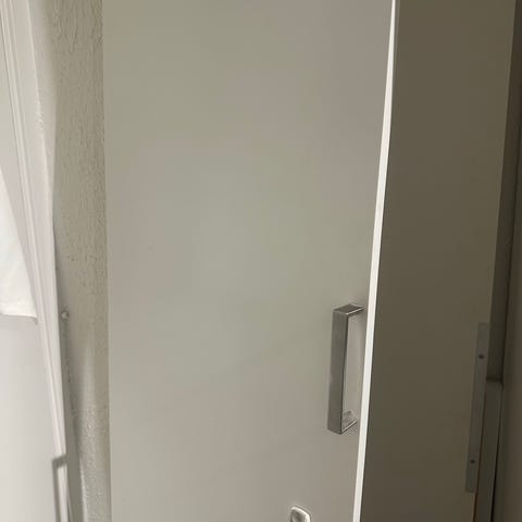 Varsamt använd garderobsdörr till Pax. Dock är redan hål gjort för handtag.