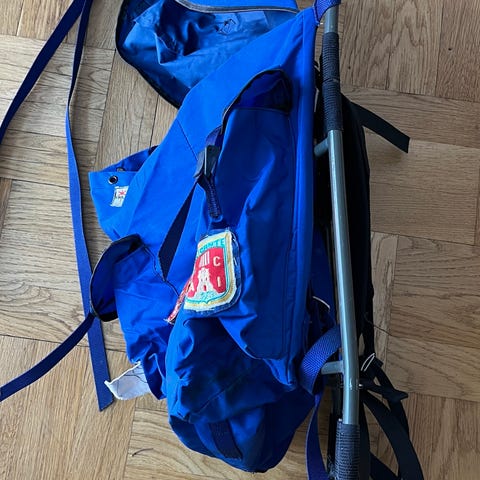 Haglöfs SHUSHO 3000 ryggsäck i svart med röda detaljer invändigt. Ryggsäcken har justerbara axelremmar och bröstrem samt flera remmar för kompression och fästpunkter på utsidan. Topplock med spännen och dragkedjefack på framsidan. Invändigt finns rosa foder och etikett med tillverkningsdatum januari 1999. Passar för vandring, friluftsliv eller vardagsbruk. Pris 400kr