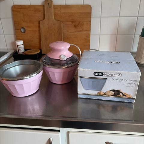 Ljusblå glassmaskin från OBH Nordica säljes. Är i bra skick, använd ett fåtal gånger.