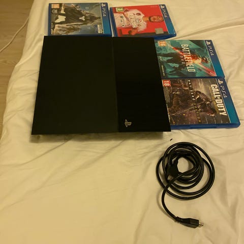 Playstation 4 + 3 controller (kan skicka med ytterligare en alltså 4 totalt, som dock är lite sådär så det får blir som en bonus)