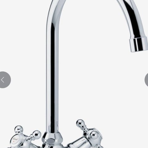 Köksblandare i mässing med hög, rundad pip. Enhandsgrepp med vit spak. Passar för montering i diskbänk eller bänkskiva i kök. Klassisk utformning som ger god räckvidd över diskhon.