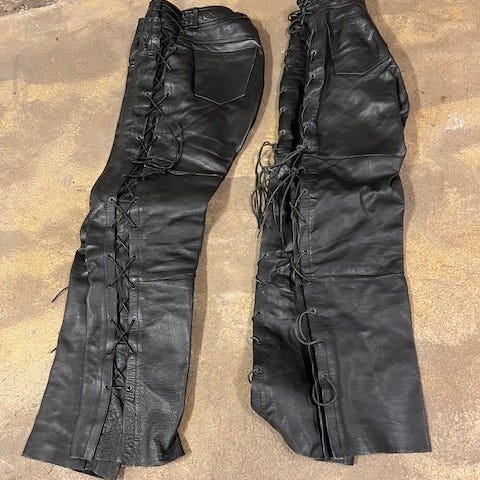 2 par skinnhandskar stl 9 och 11, 200:- per par. 2 par gamla militär handskar 100:- för båda. Ryggskydd längd 46 0ch 56 cm, 300:- st. Väska som träs på ryggstöd 200:-