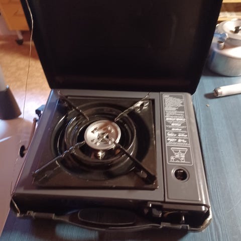 Funkar bra, lite omgjord så man kan ha en liten panna på gallret.
