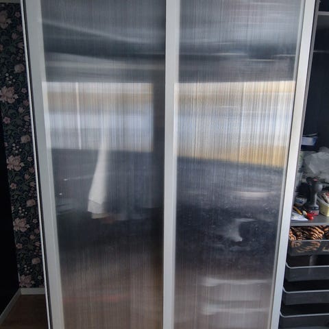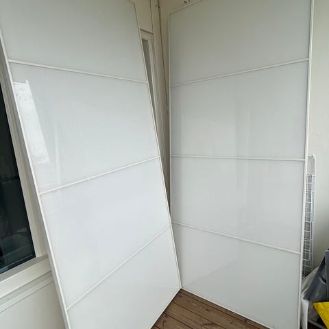 Vita skjutdörrar till IKEA Pax-garderob, 150 cm breda och 236 cm höga. Passar till 2 st garderobstommar med bredd 75 cm styck.