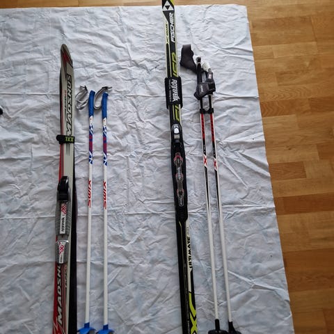 Skidorna är klassiska längdskidor med belag anpassade för preparerade spår.