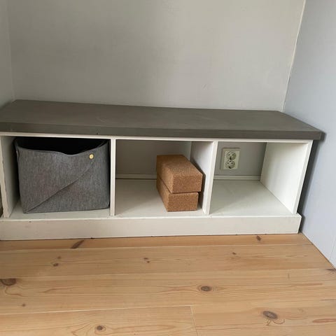 Bänk med tre lådor och tre skåp med hyllor. Lämpligt för t ex hall eller arbetsrum. Hämtas i Hässelby Strand.