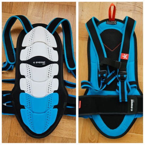 Cairn Pro Armor ryggskydd i svart och blått. Modellen har justerbara axelremmar och midjerem för att sitta stabilt på kroppen. Ryggskyddet är utformat för att ge stötdämpande skydd vid exempelvis skidåkning, snowboard eller annan utförsåkning. Passar som skyddsutrustning för sport- och fritidsaktiviteter där extra ryggskydd önskas.