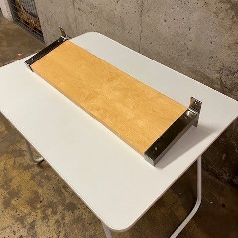 Hyllor som har dold uppsättning. Ser ut som de svävar. En ek-mönstrad, en svartbrun. Längd 190 cm Djup 26 cm Tjocklek 5 cm. 100:- st. Köp båda för 150:-